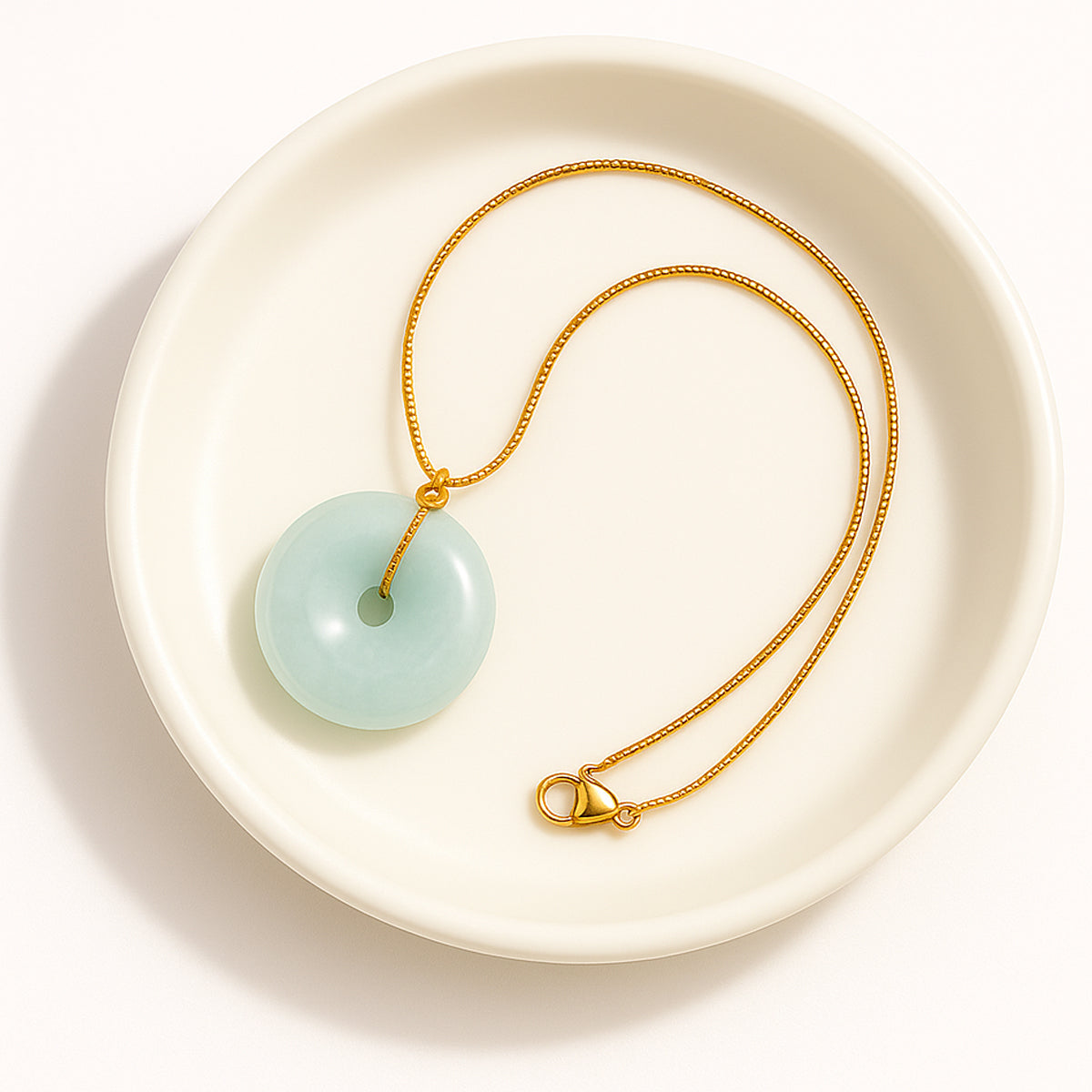 Excessive sweat can affect jade’s surface over time, potentially dulling its shine or altering its color. It’s best to remove jade jewelry during intense exercise or hot weather. Gently wipe it clean afterward to preserve its natural luster, clarity, and long-term quality.